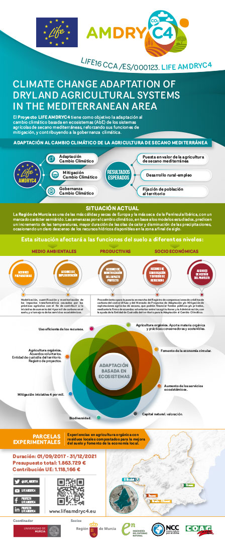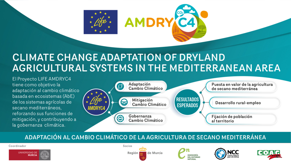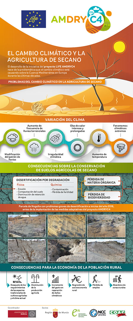 Diseño de paneles y roll-ups para LIFE AMDRYC4, un proyecto demostrativo con carácter innovador, que presenta un nuevo enfoque para promover soluciones naturales para la adaptación al cambio climático de los sistemas agrícolas de secano en el área mediterránea.
